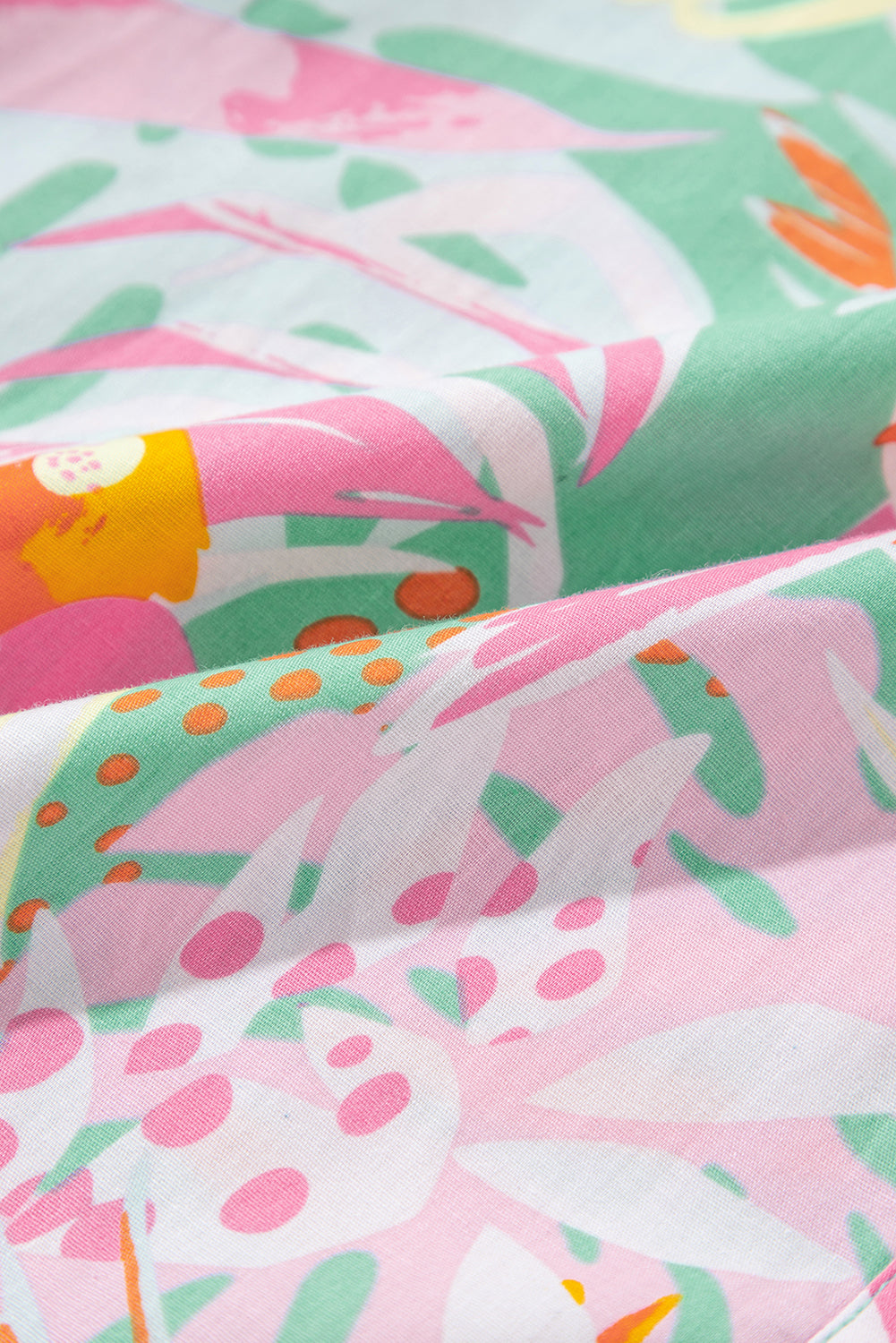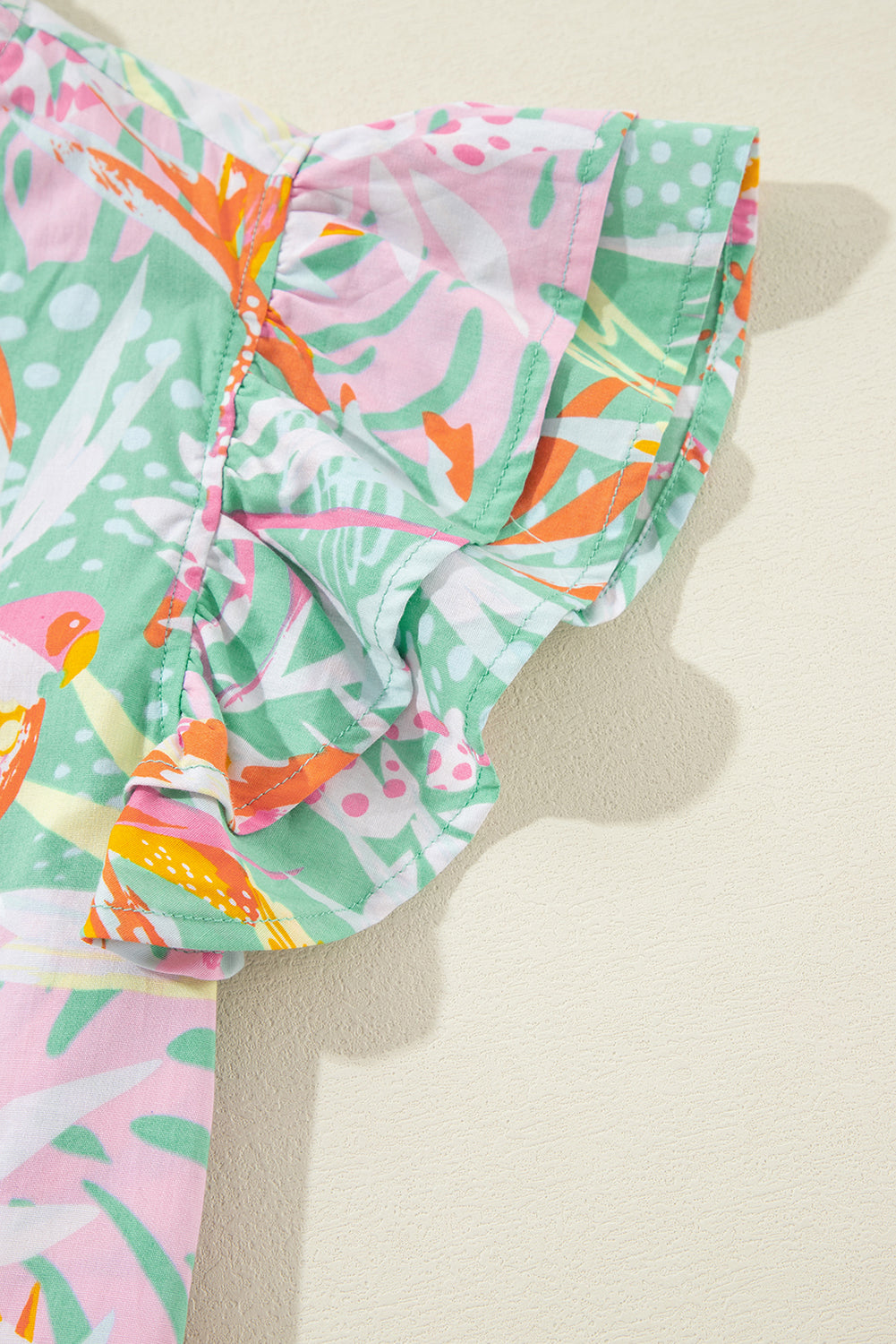 Green Abstract Floral Ruffle Trim Flutter Sleeve Buttoned Dress