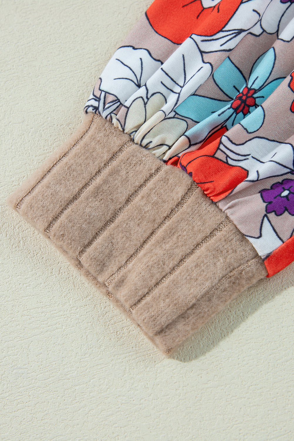Parchment Floral Patchwork Long Sleeve Ribbed Blouse