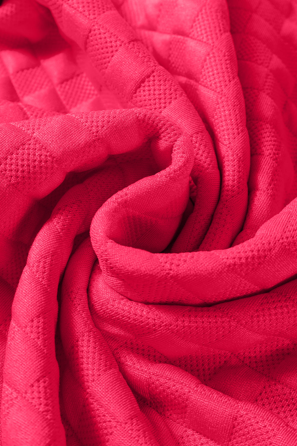 Strawberry Pink Checkered Textured Split Pullover Top and Pants Set